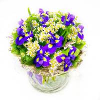 Букет из семи ярких синих ирисов прекрасно подойдет для мужчин на подарок или в качестве извинения. Эти цветы столетиями считаются отличным знаком внимания и обозначают доверие, мудрость и бесстрашие. Цветочная композиция обернута в экологичную бумажную упаковку и смотрится невероятно стильно. Поводов для такого подарка множество: День Рождения, повышение, также букет преподносится в качестве извинения для коллеги или босса.